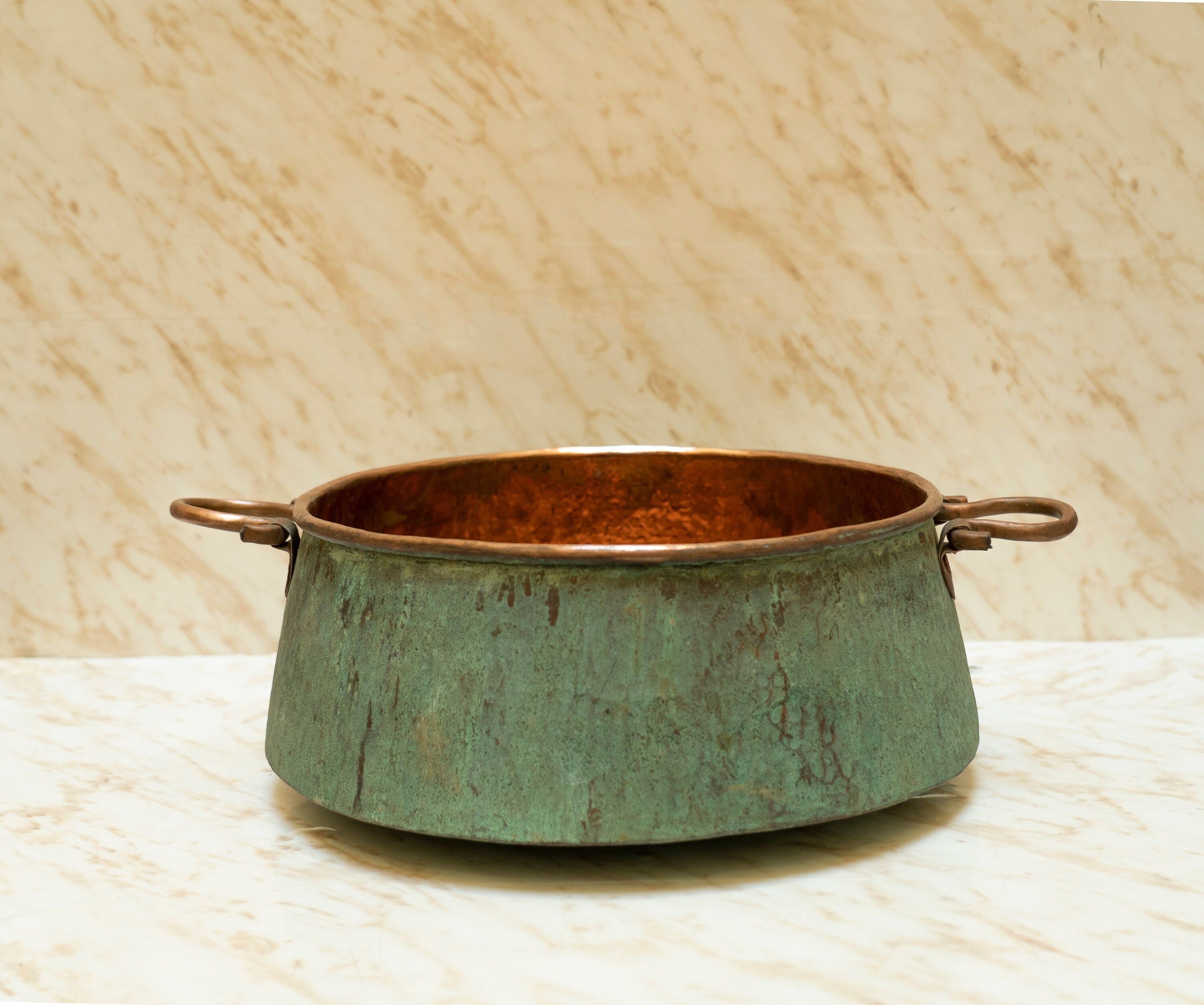 Uncategorized Vintage Charm: Green Patina Copper Bucket Vessel Bathroom Sink with Handles Posted by redavintage On September 30, 2025 0 comments