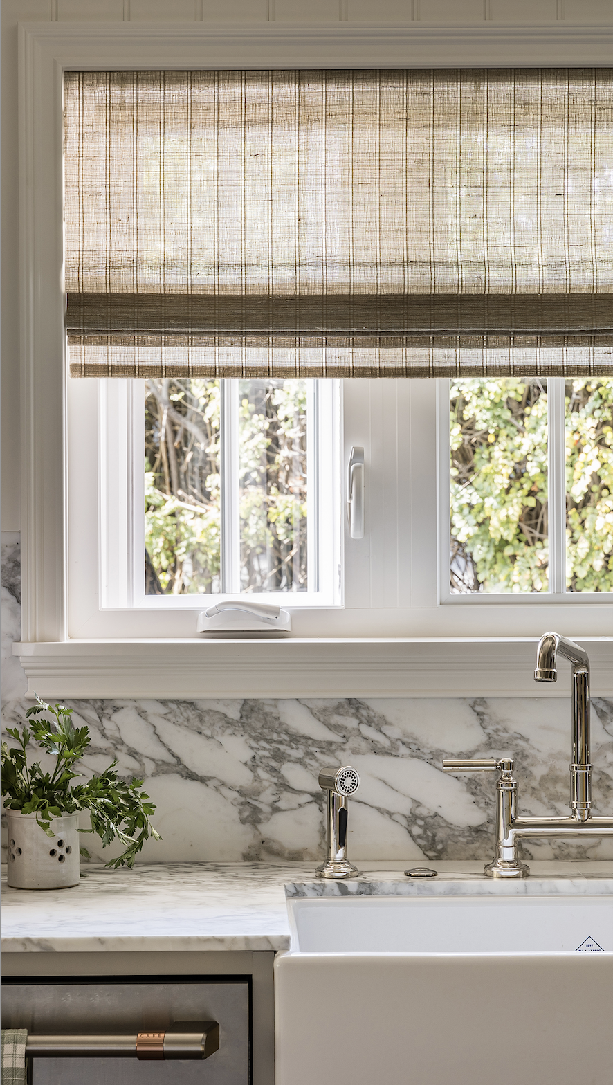 Tan flat roman shade | Kitchen windows – The Shade Store