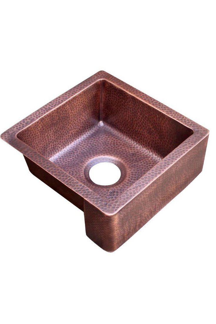 Small kitchen bar tops farmhouse sinks with apron and beehive hammered texture, made in old copper patina