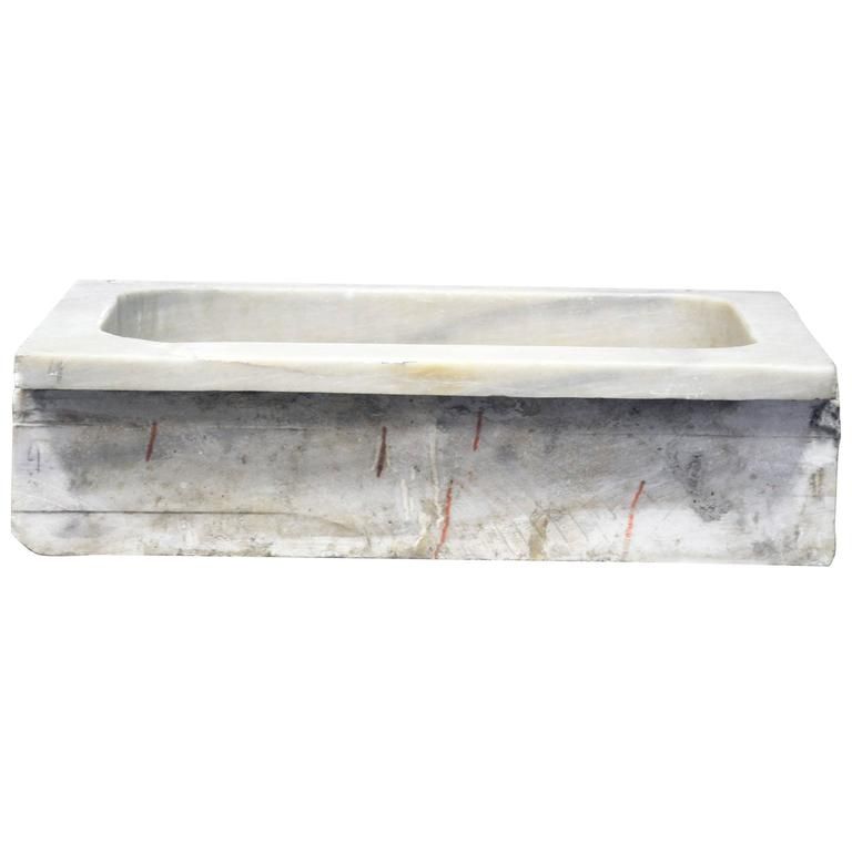 Fabulous vintage sink basin in white marble. Four smooth edges and carved front ledge with beautiful grey veining. Estimated 1920s-1930s when running water became prevalent in homes. Includes pre-cut hole for drainage fixture. Inside measurements are 22 1/2″ W x 13 1/4″ D x 5″ H. Drain opening approximately 3 3/4″ in diameter. Established in 1979, Joyce Horn Antiques, ltd. continues its 38 year tradition of being a family owned and operated business specializing in hand procured, Fine European antique and reproduction furniture and accessories. In addition, each beautiful piece is fully restored by our in-house team of experts. Offering shipping world-wide, visit our website or shop our expansive Houston, Texas showroom to learn more.