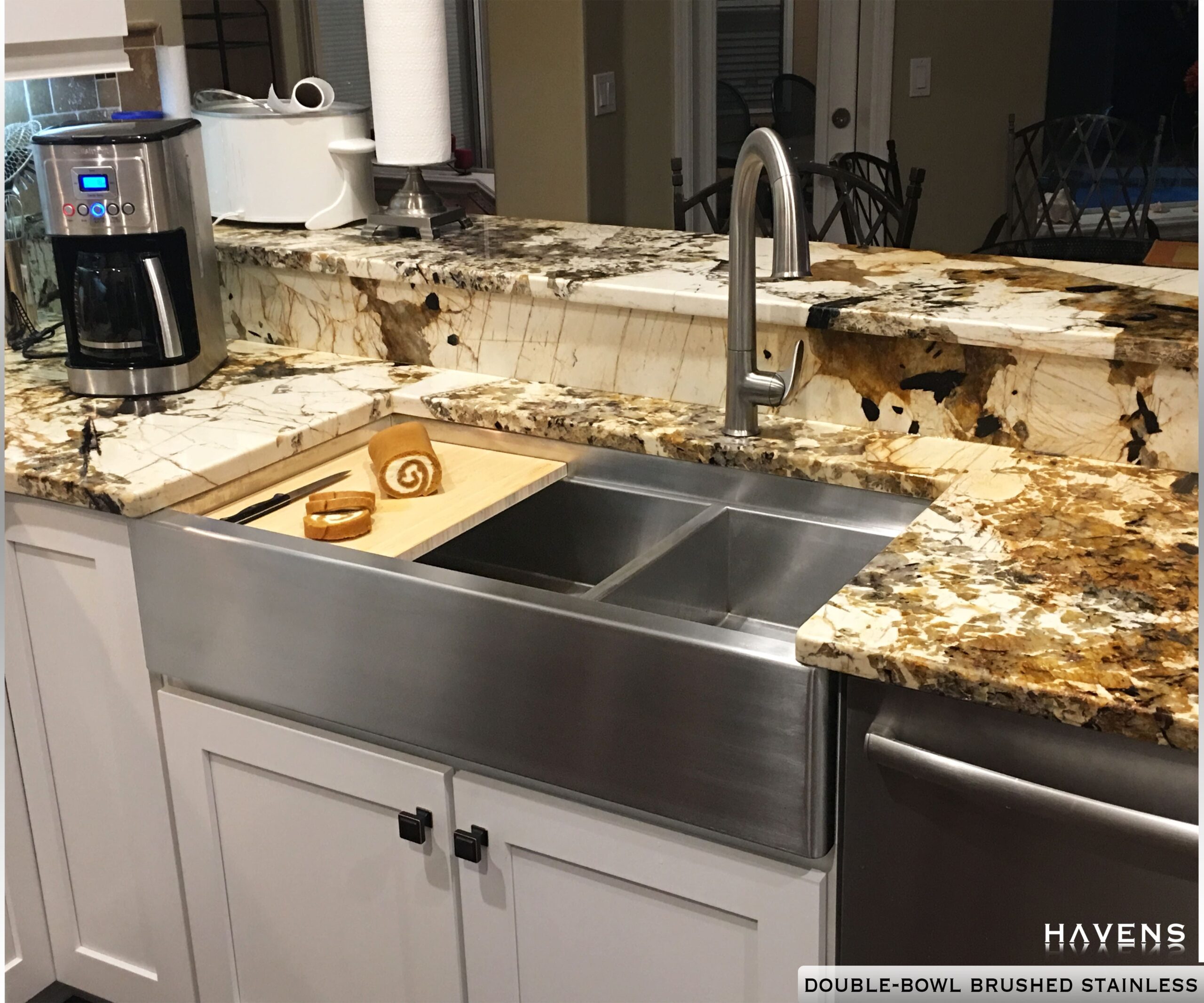 Caliber Double Bowl Farmhouse Sink in Brushed Stainless Pure Stainless Steel | USA Melt and Manufactured HavensMetal.com #kitchen #kitchensink #interiordesign