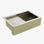 This Caliber Double Bowl Farmhouse Sink paired with contemporary granite counter…