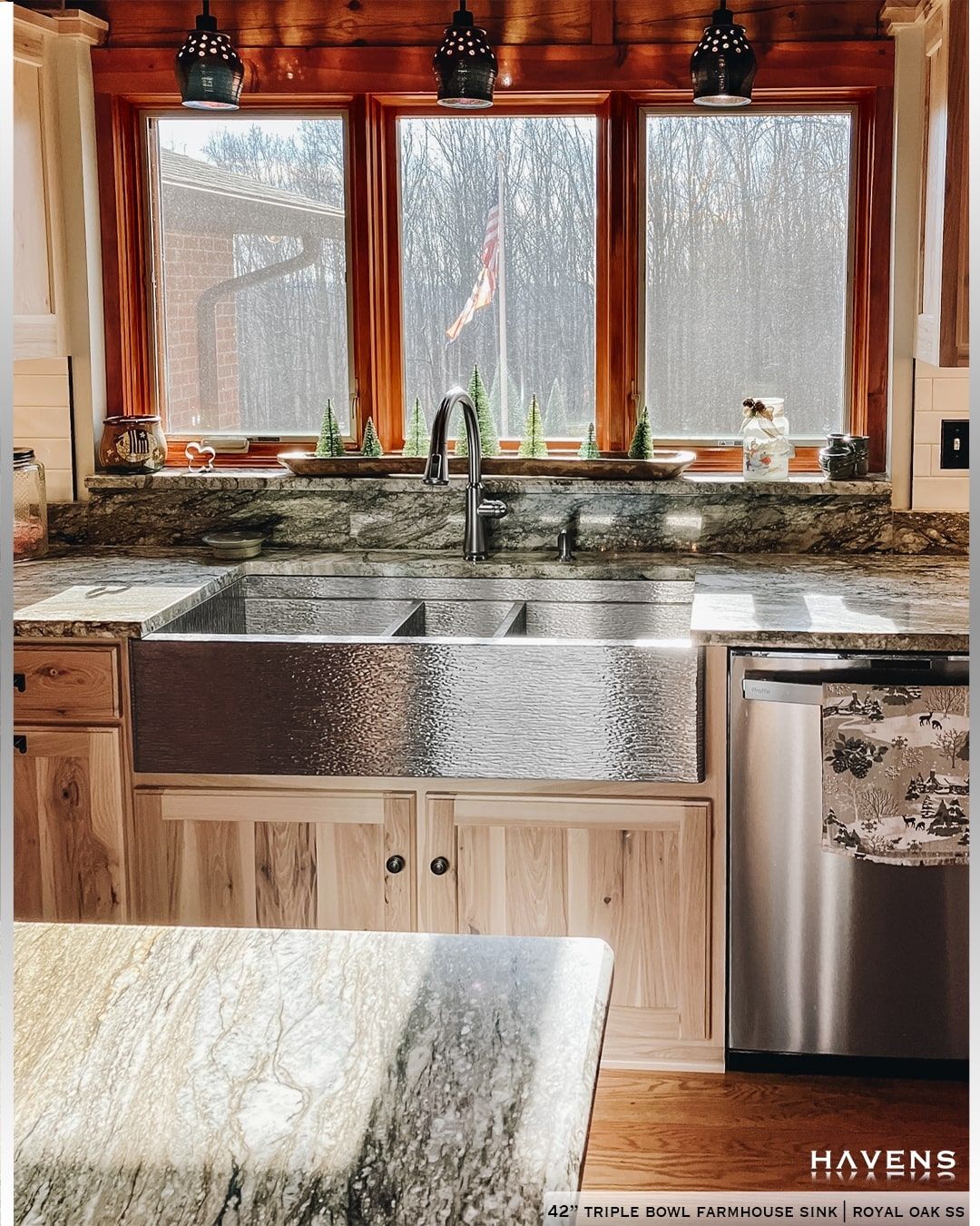 Because sometimes… two bowls just doesn’t cut it. 👀 Sink Details: 42″ Overall 📏 Legacy Accessory Ledge 💦 Triple Bowl Design 💎💎💎 Royal Oak (wood grain inspired) Stainless Steel 🪵 Farmhouse Apron Front 🏡 Give us a call today to request a quote. (407) 456-7071 📞 Make Your Home A Haven ✨