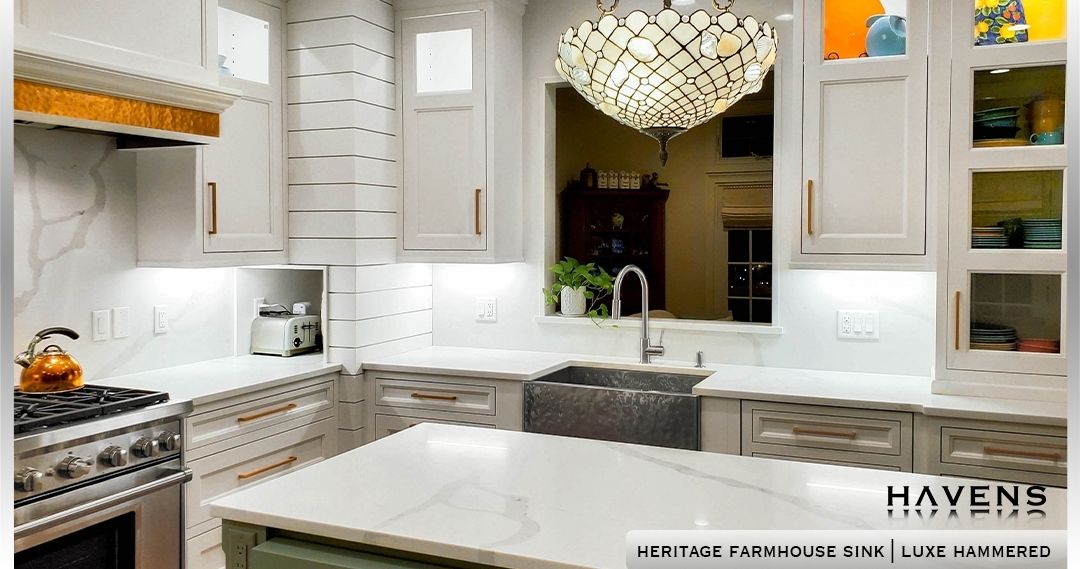 We love the mixed metals in this kitchen! This STUNNING kitchen features a Heritage Luxe Hammered Stainless sink with a custom hammered copper trim on the range hood and copper pulls on the cabinets. 🤩 Mixing metals can be a great way to add a visual interest to your kitchen or bathroom. It’s also a great way to add contrast, which is something we’re big fans of. The good news is that almost any combination will work—the key is figuring out what works best for you!