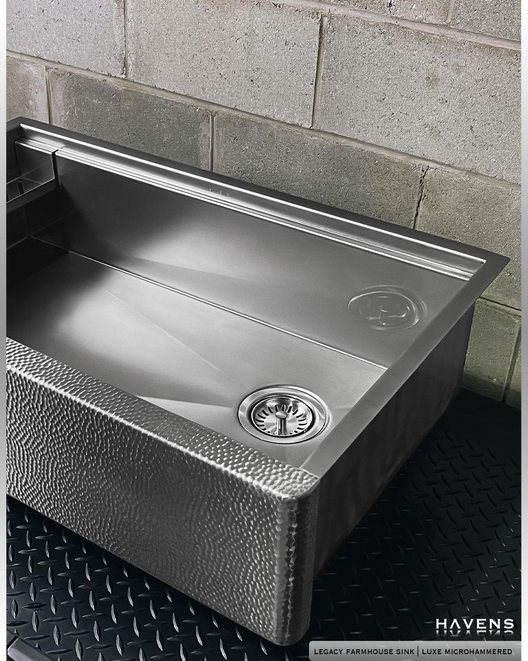 The clean aesthetic of our Luxe Stainless Steel with the Newly Released Micro-Hammered Apron is a match made in heaven. 🤩 The Micro-Hammered Apron has a subtle, hammered finish that adds just enough texture to make your sink stand out and look like it belongs in a luxurious kitchen. The shine on this new finish is incredible, and we can’t get over how bright it shines under natural light. ⚡️⚡️ HavensMetal.com ⛓️