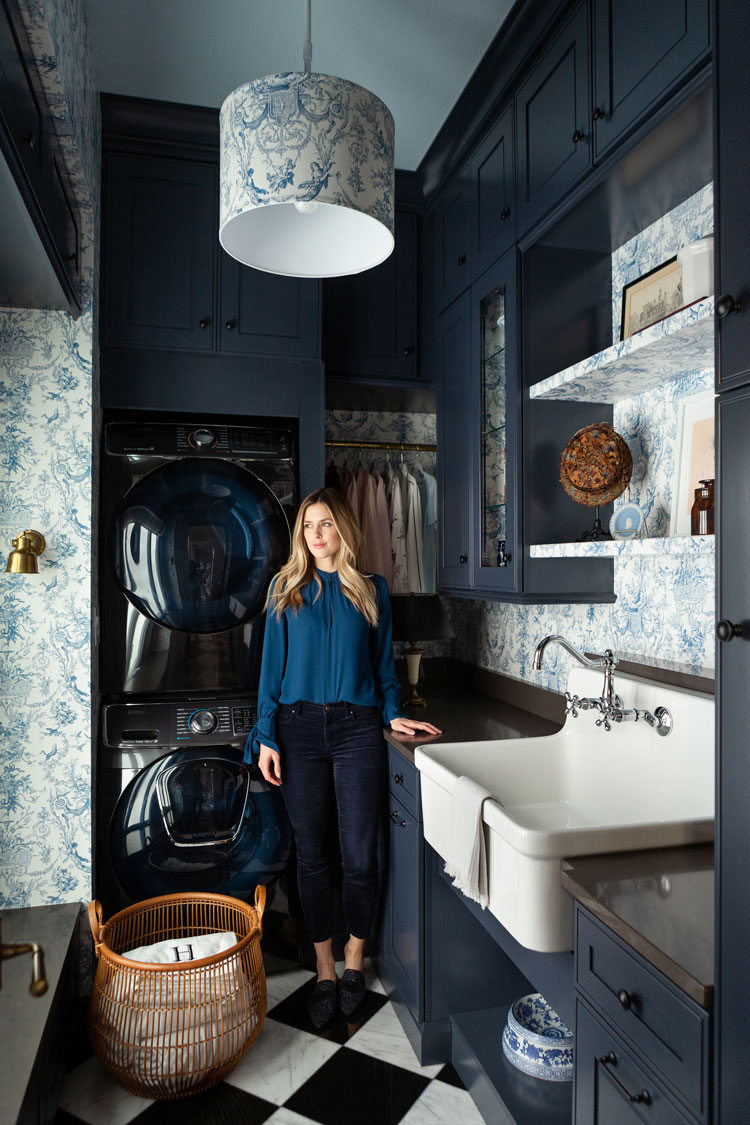 This project is sponsored by Lowe’s, but all thoughts, opinions, and selections are my own. It’s reveal day, and I’m so excited to share this room with you! To have a space that enables me to be the best housekeeper I can be in a room that makes me happy – it’s a wonderful and motivating feeling. The space feels bigger, much more functional, and beautiful. From the graphic floors to the sleek cabinets, the sweet and classic wallpaper to the workhorse appliances and fixtures….it’s full of details I love. We continued the floors in from the kitchen and hall bath, and the contrasting diamonds are wonderful with the moody, blue cabinetry by KraftMaid. You can read all about the cabinet color and style in this post. I went with matte black hardware to keep the inky blue cabinets feeling clean. Plus, I just love navy and black together. So […]