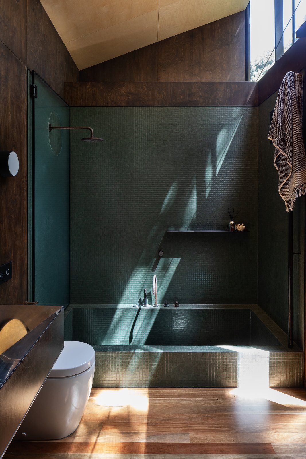 While Herbst doesn’t typically construct step-in bathtubs, this project led the team to work on as small a scale as possible as to balance the supporting stilts. #dwell #newzealand #modernbeachhouses