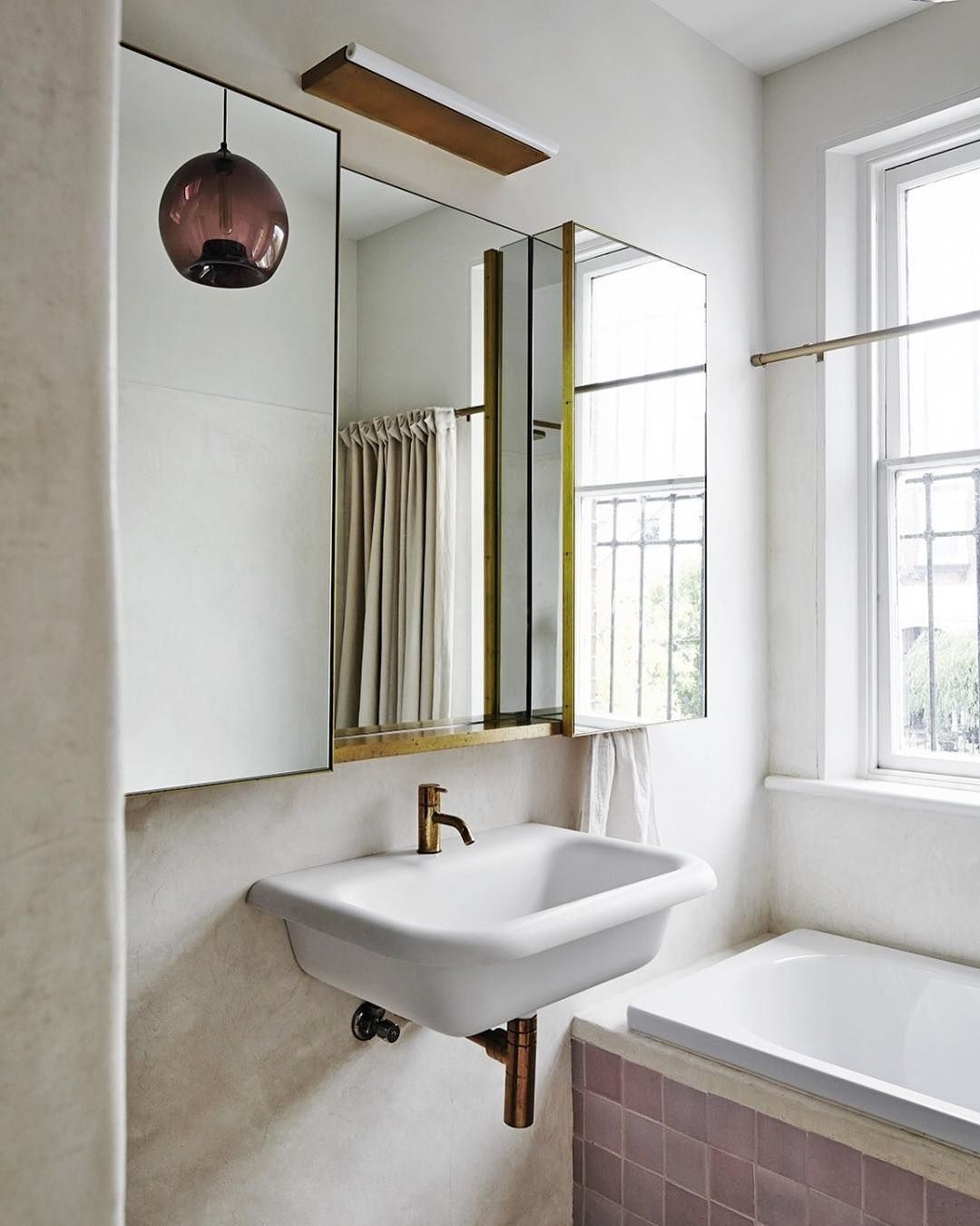The interior architecture is minimalist yet warm with consideration given to every detail and selection | Little Parndon, Templeton Architecture . . . . @sharyncairns, @templetonarchitecture #bathroominspiration #bathroomdesign #pink