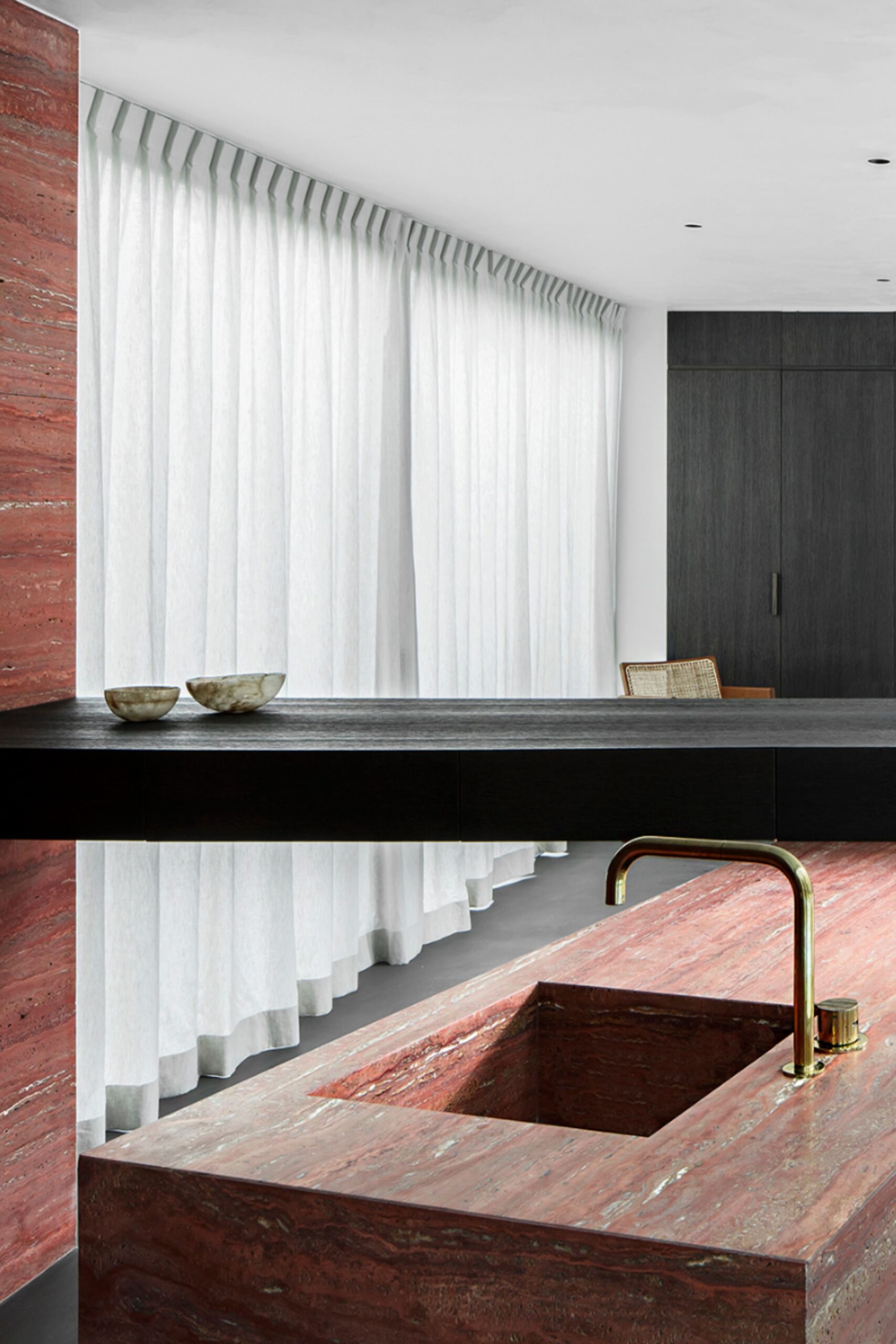 vintagecopperdecor tap 590 in Natural Brass seen combined with natural pink stones. For more inspiration about the poolhouse in Belgium, please read the article. _________Credits: vintagecopperdecor, Arjaan De Feyter and Piet Albert Goethals. #brass #brassbathroom #metallicbathrooms