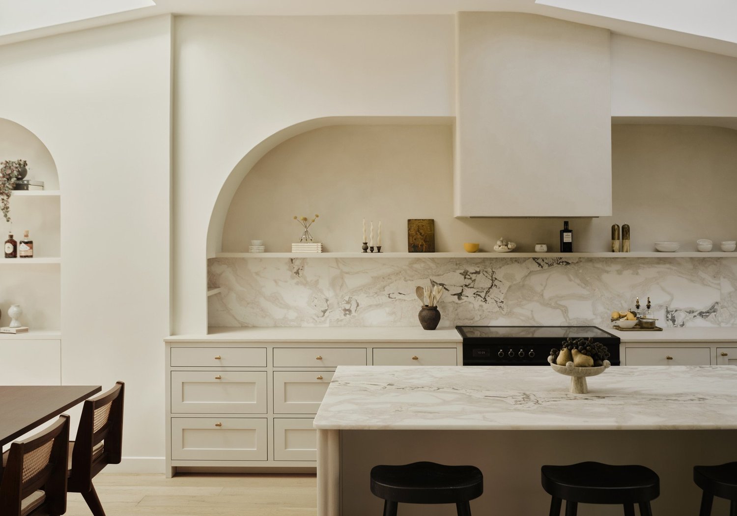 Soft, curved arches appear throughout the kitchen design – a graceful nod to the home’s historic character – adding both charm and a sense of timeless elegance.