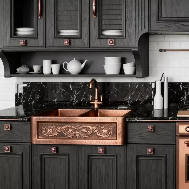 Handmade Copper Farmhouse Sink Double Bowl 50/50 with Apron Front Relief and Overflow – Vintagecopperdecor | Custom Copper & Brass Range Hoods for Luxury Kitchens