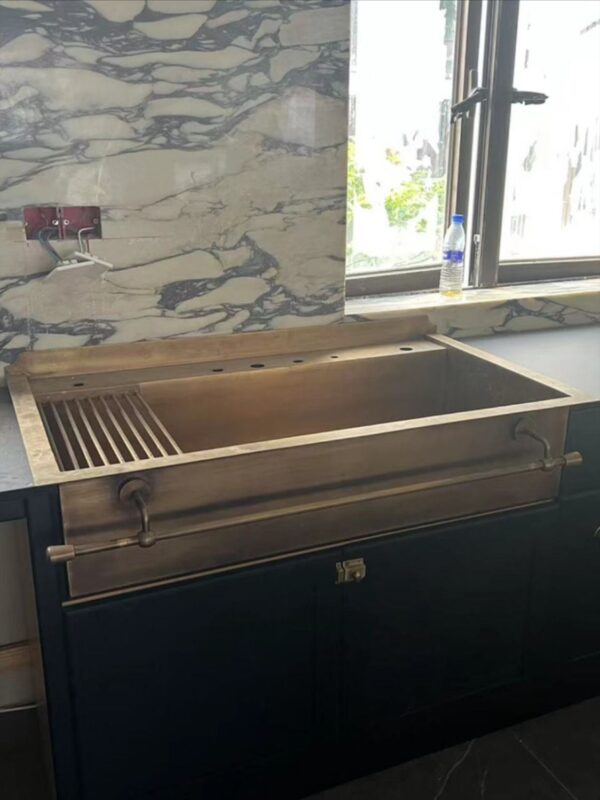 Custom design, 36x22x8inches. With hand hammer and double patina mixed. The pattern can be done based on customer request.