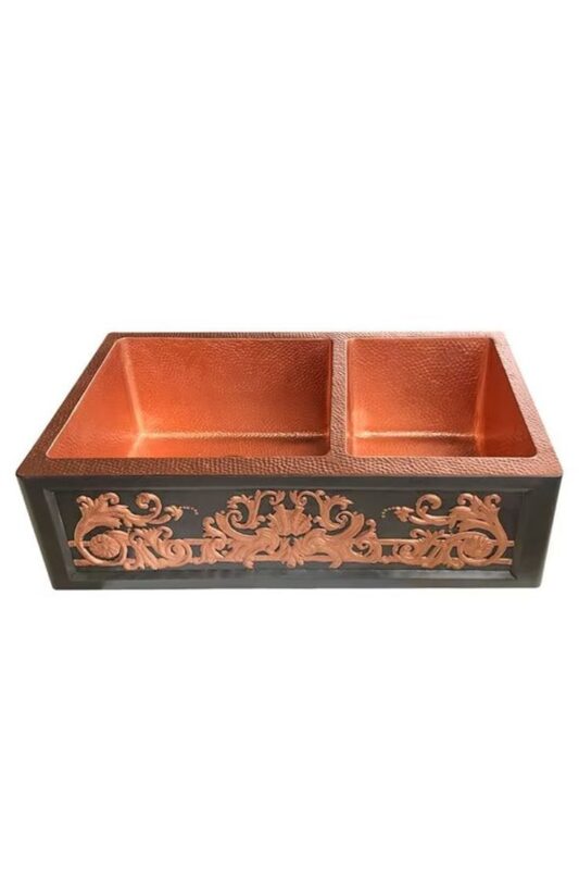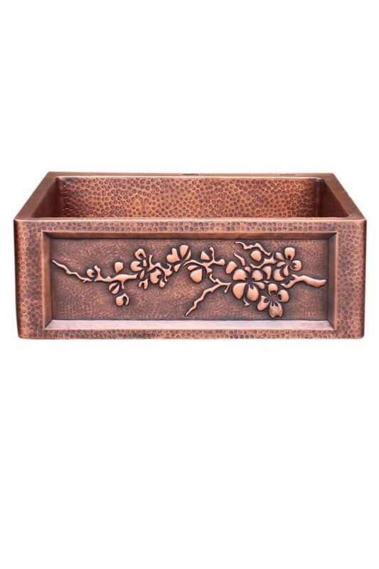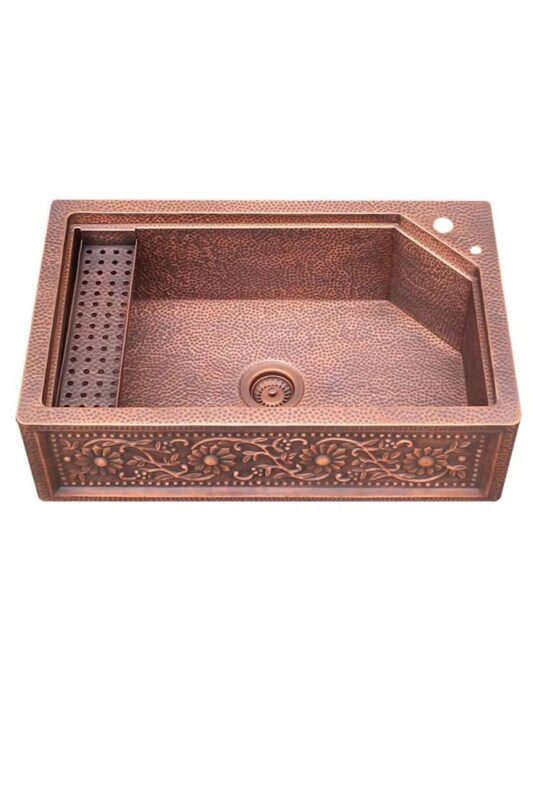 with flower pattern front that hammered by our copper smith, A beautiful small single bowl farmhouse sink will be your dream kitchen do...