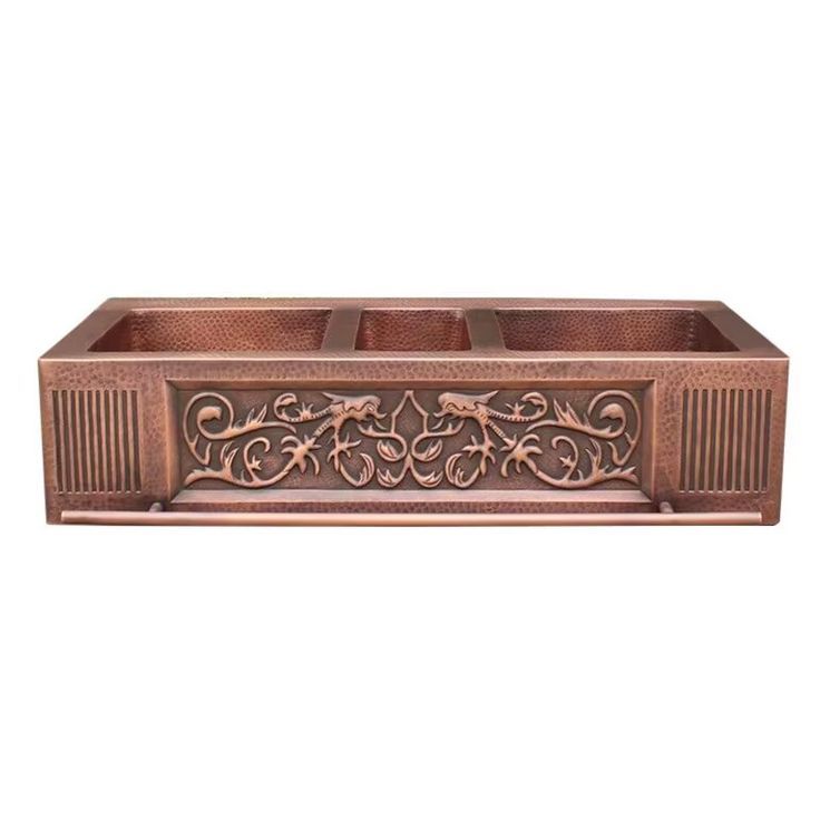 42 Inch Triple Bowl Copper Farmhouse Kitchen Sinks with Art Relief That I Got From Ancient Myth