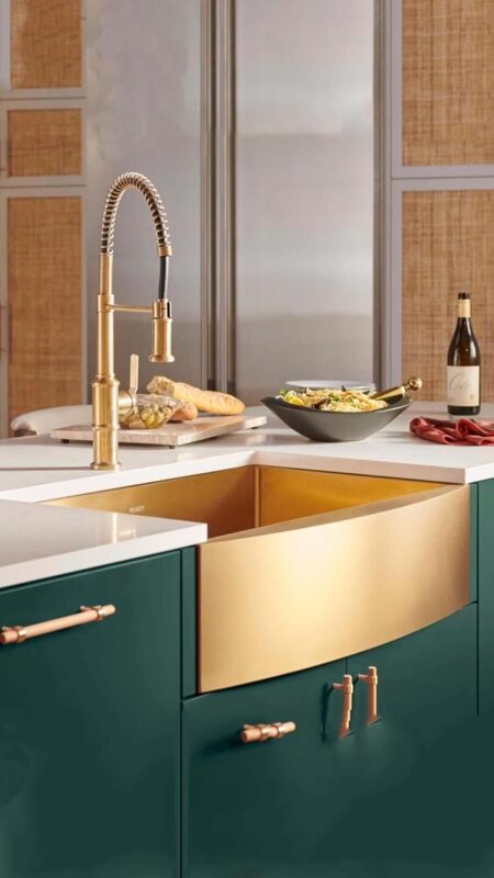Hand made Brass Farmhouse Kitchen Sinks with round apron. made from 1.5 mm/ 16gauge brass sheet