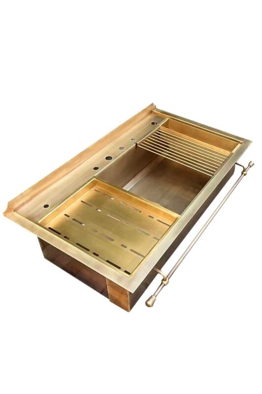 Matte Finish Stainless Steel Sink with Brass Top Panel