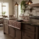 Handcrafted Copper Kitchen Sink with Brass Towel Bar & Fine Sand Texture Rim – Farmhouse Apron Front Design – Vintagecopperdecor | Custom Copper & Brass Range Hoods for Luxury Kitchens