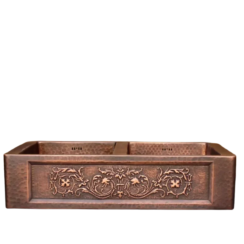 Handmade Copper Farmhouse Sink Double Bowl 50/50 with Apron Front Relief and Overflow – Vintagecopperdecor | Custom Copper & Brass Range Hoods for Luxury Kitchens