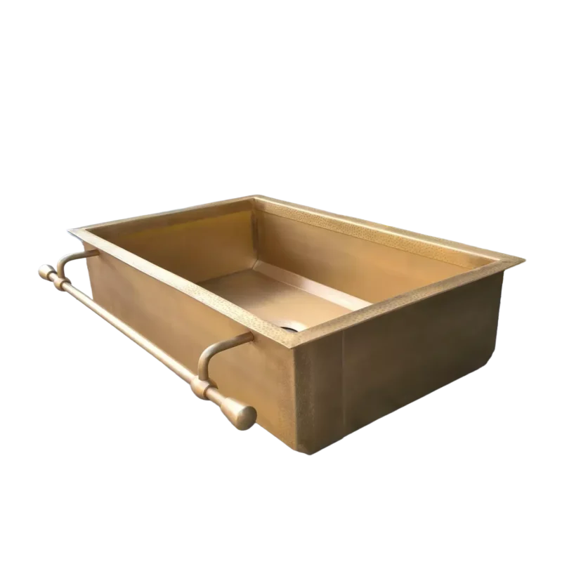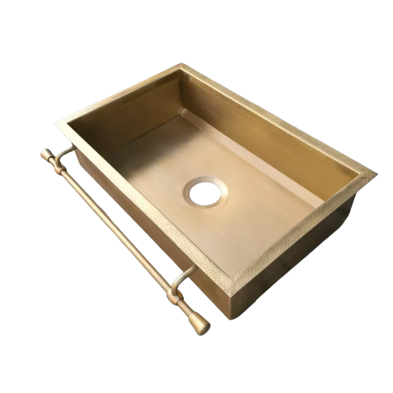 Handcrafted Brass Kitchen Sink with Fine-Hammered Rim and Towel Bar – Vintagecopperdecor | Custom Copper & Brass Range Hoods for Luxury Kitchens