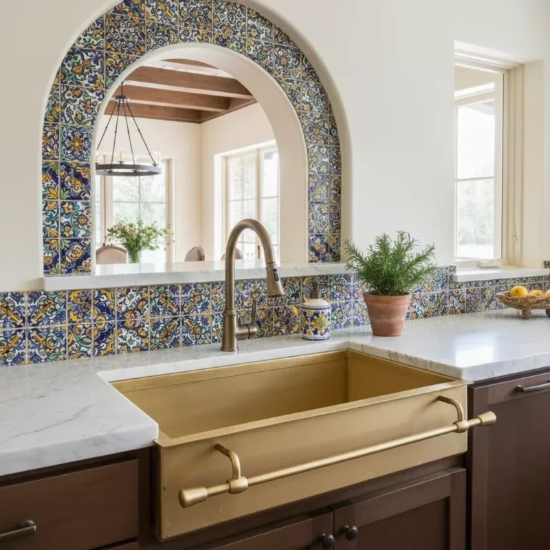 Handcrafted Brass Kitchen Sink with Fine-Hammered Rim and Towel Bar – Vintagecopperdecor | Custom Copper & Brass Range Hoods for Luxury Kitchens