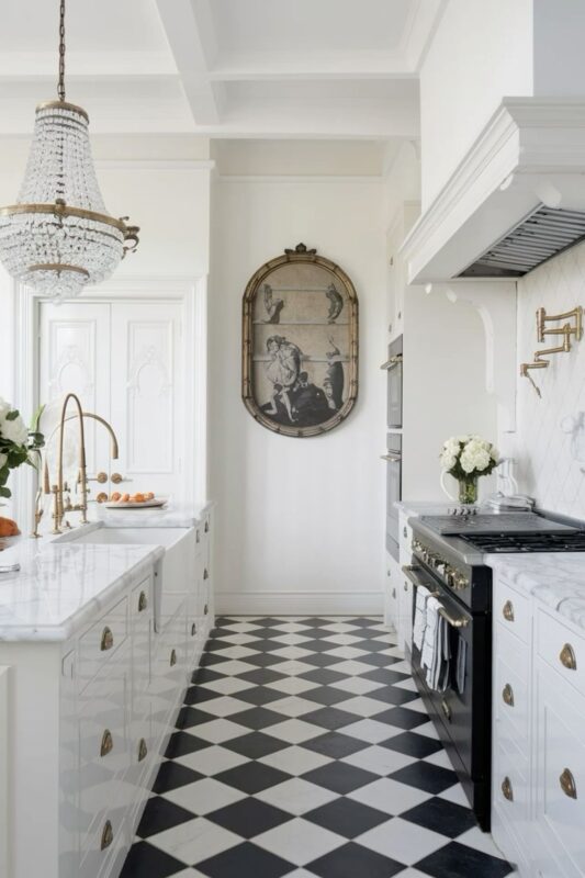 #ParisianKitchen #ChicMonochrome #ElegantKitchen #MarbleAndBrass #LuxuryKitchen #ParisStyle #KitchenGoals#home#decor
