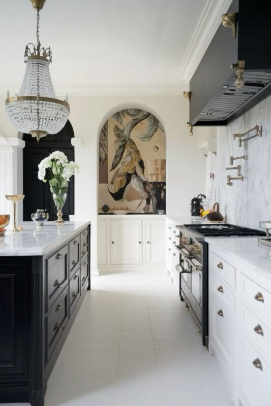 #ParisianKitchen #ChicMonochrome #ElegantKitchen #MarbleAndBrass #LuxuryKitchen #ParisStyle #KitchenGoals#home#decor