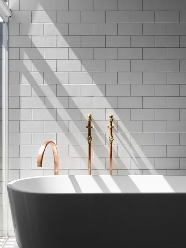 White tiles | copper details | beautiful bathroom inspiration | loft living | warehouse conversion