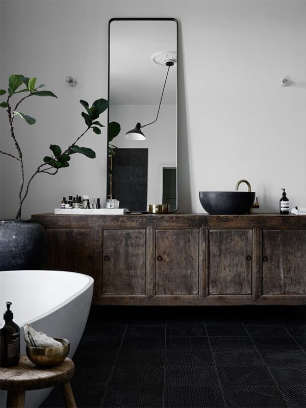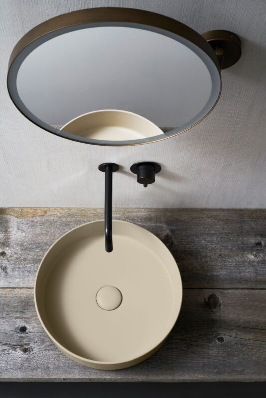 Lavabo d'appoggio collezione Shui Comfort color LINO - design by Paolo D'Arrigo e Specchio Pluto collezione Arcadia - design by APG Stu...