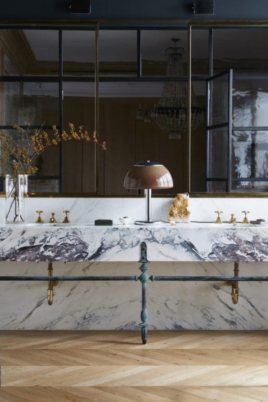 I don't even know where to begin with this one.. Love the floor, love the gold detailing, love the doors.. and the sparkle.. Also a big...