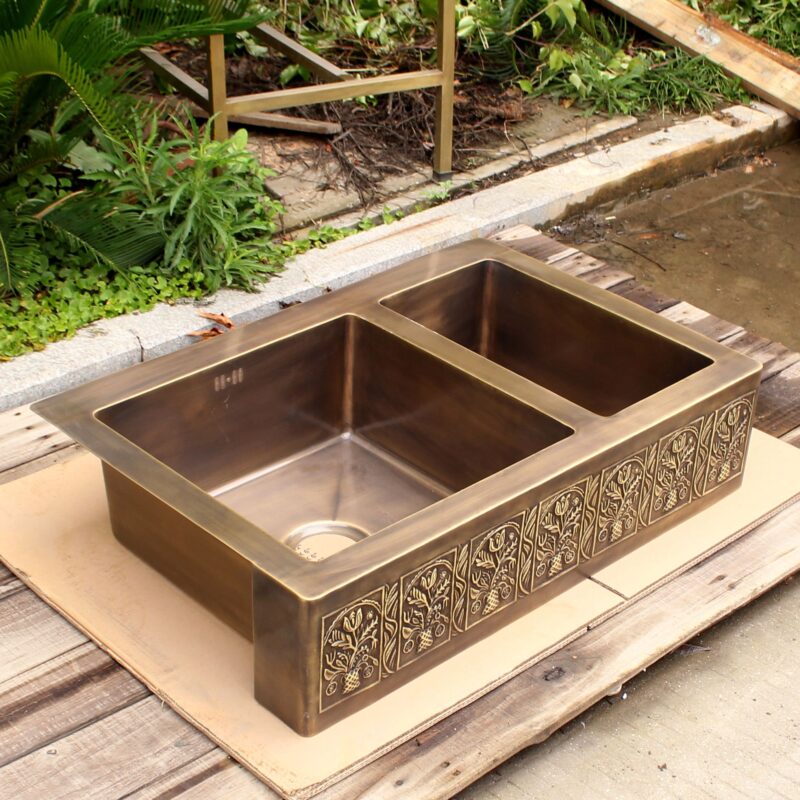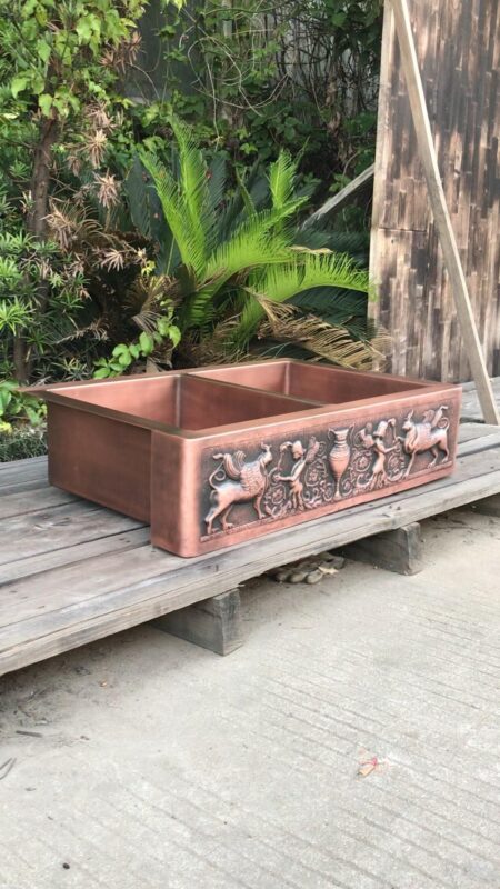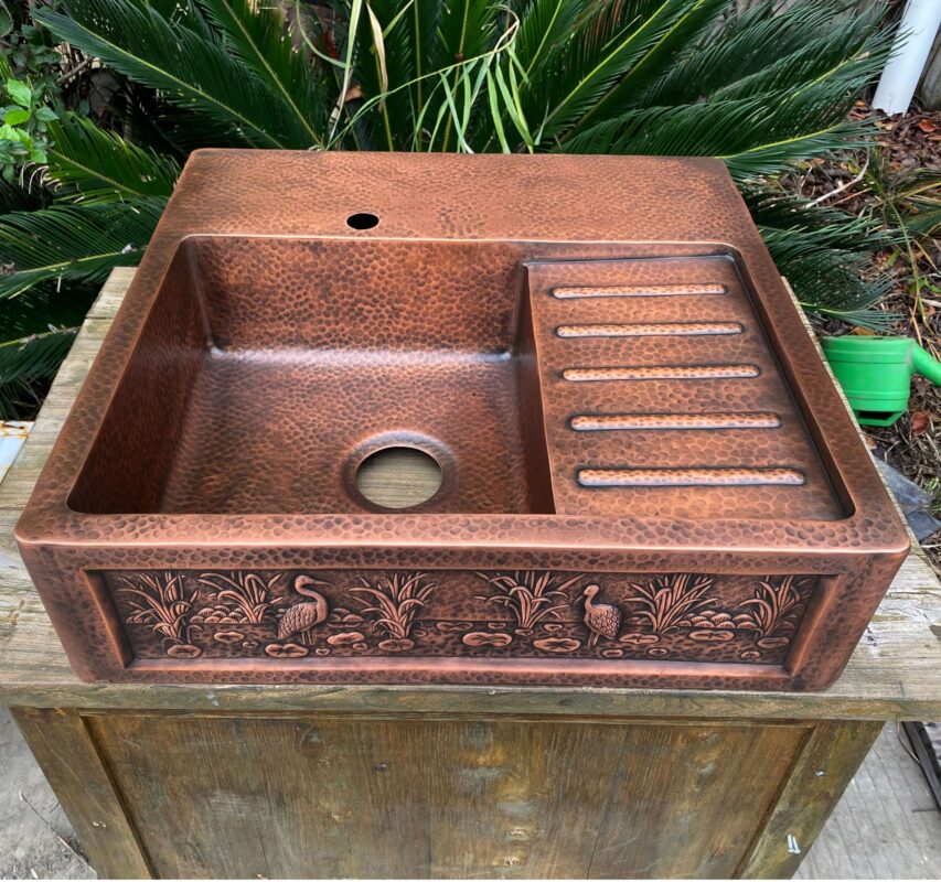 Artisan Copper Farmhouse Kitchen Sinks with ebossed pattern