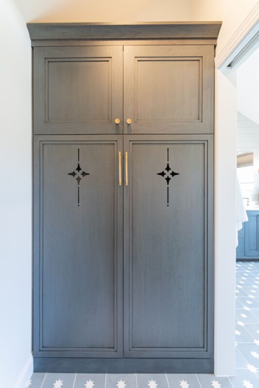 After renovating their neutrally styled master bath Gardner/Fox and Glenbrook Cabinetry helped their clients create this farmhouse-insp...