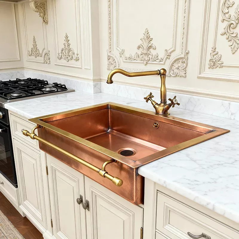 Oversized Silver & Brass Stainless Steel Sink – Luxury Italian-Inspired Design