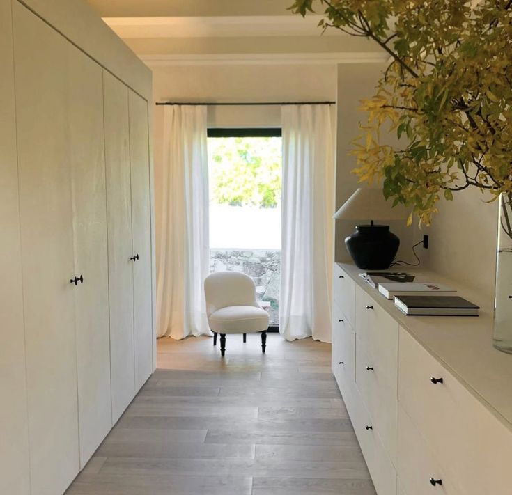 i want a room like this so bad. exposed beams in the ceiling. wall of windows. stone floors. home decor and interior decorating ideas.