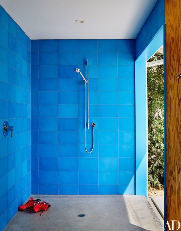 At the Malibu home of the Beastie Boys' Mike D, which the musician designed with architect Barbara Bestor, an outdoor shower for handy ...