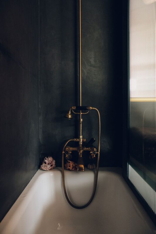 Let the vintagecopperdecor KV1 freestanding tap create depth and impact in your new design space #vola #kitchendesign #kitchendesignid...