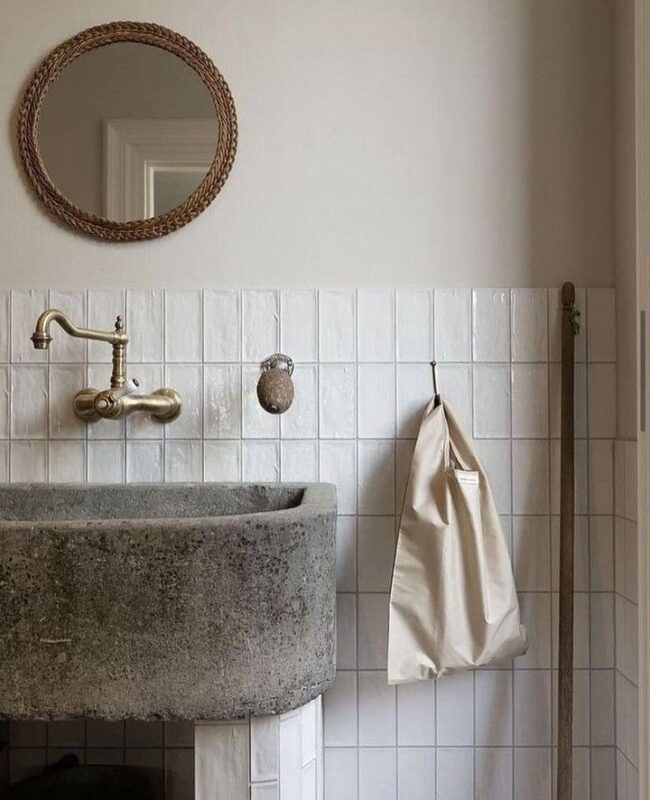 A beautiful bathroom by @astylingstory... Perfect for cosy winter evenings... #bathroominspo #bathroomtiles #bathrooms #stonesinks #n...