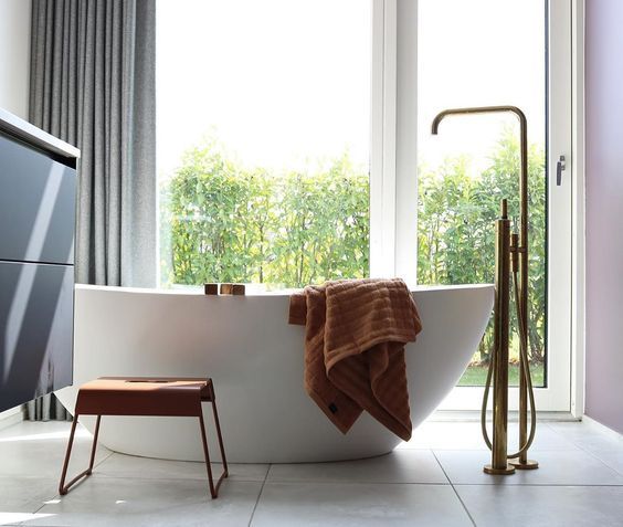 Let the vintagecopperdecor FS1 freestanding tap create drama and impact in your new design space #vola #bathroomdesign #bathroomideas ...