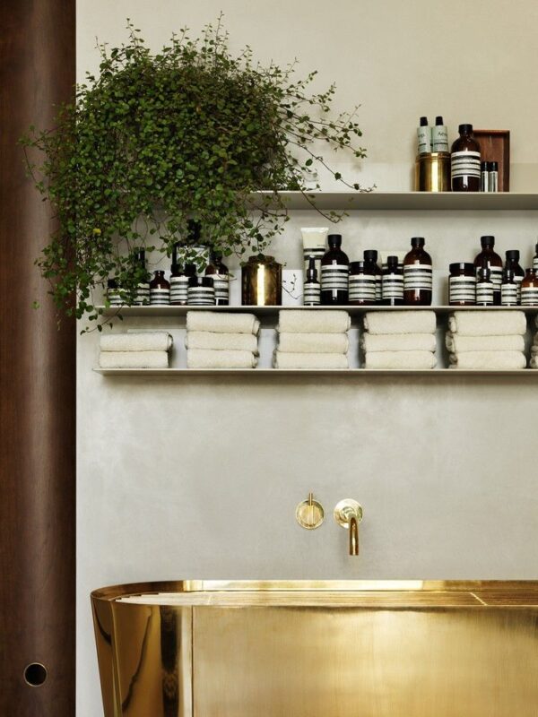 Who wouldn't love a calm and relaxing bathroom like this. #brass #brassbathroom #metallicbathrooms #metallicbathroom
