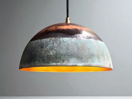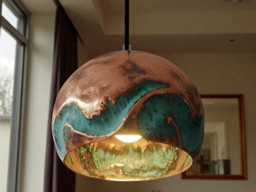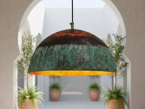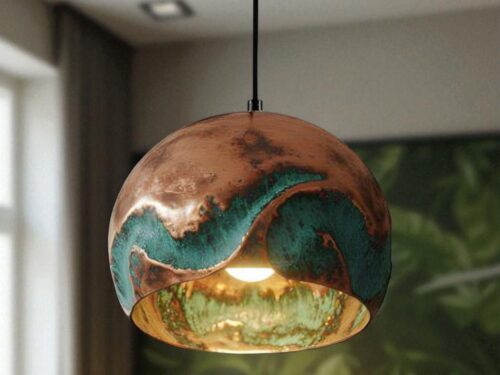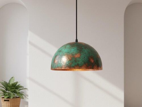 Original price was: 169,09 $.84,54 $Current price is: 84,54 $.Handmade Oxidized Copper Pendant Light – Green Patina Dome Ceiling Lamp – Farmhouse Rustic Kitchen Lighting – Copper Hanging Light