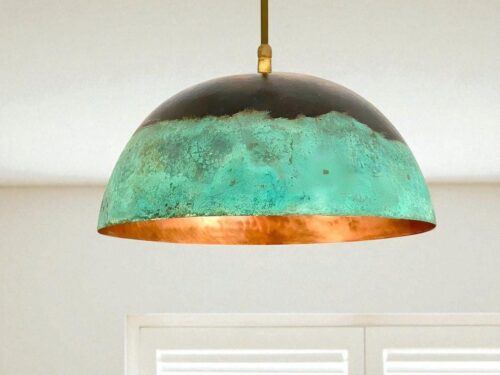 Oxidized Copper Dome Pendant Light: Industrial Kitchen Island Lighting