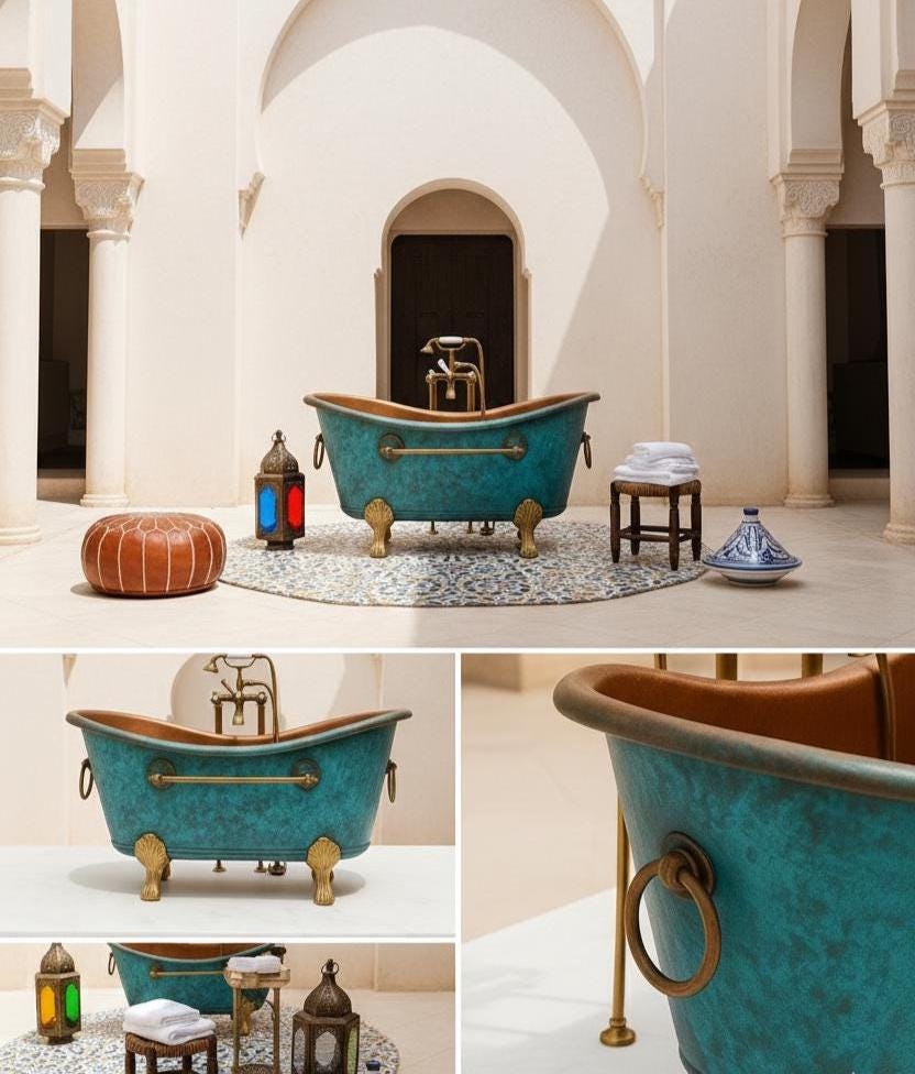 Each tub is handmade in Morocco by skilled artisans who individually shape, polish, and finish every piece — ensuring that no two are ever exactly alike.