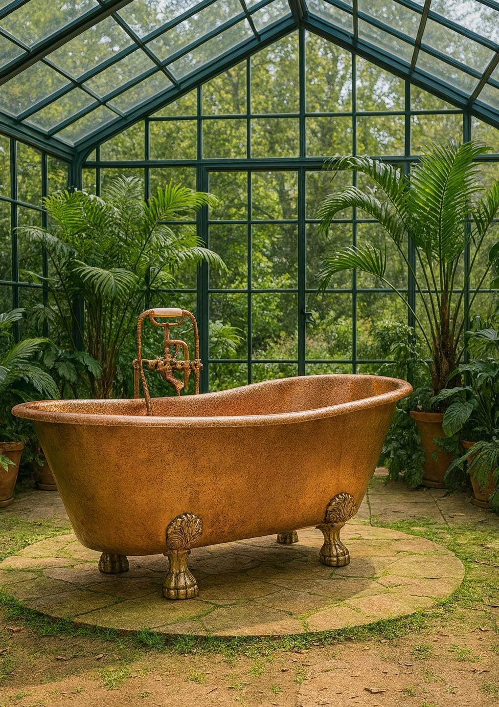 This handcrafted copper bathtub is well suited for outdoor use, made from solid copper that naturally resists moisture and changing weather conditions. Its durable construction performs well in outdoor environments such as patios, gardens, and spa areas, while copper’s natural patina adds protection and timeless character over time.
