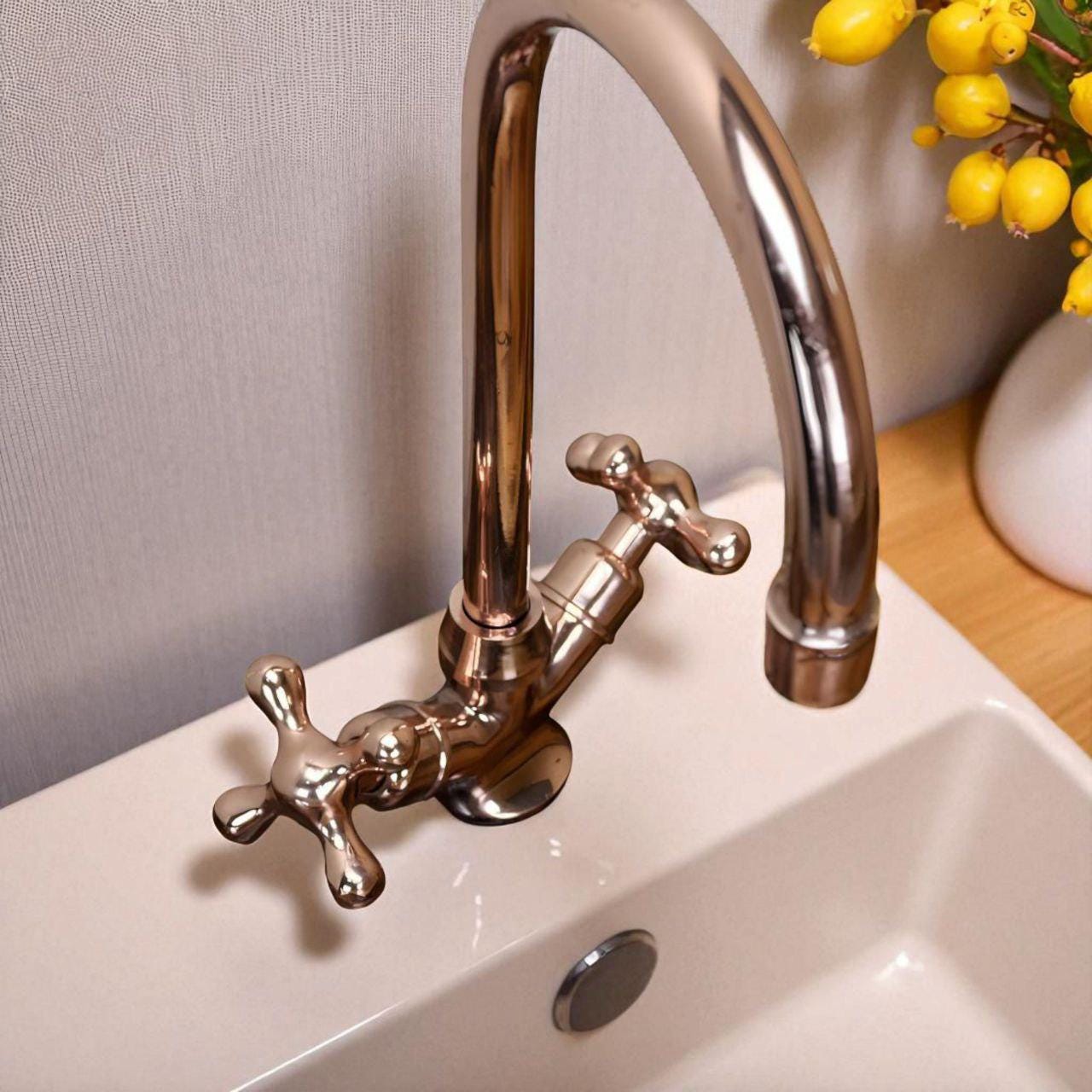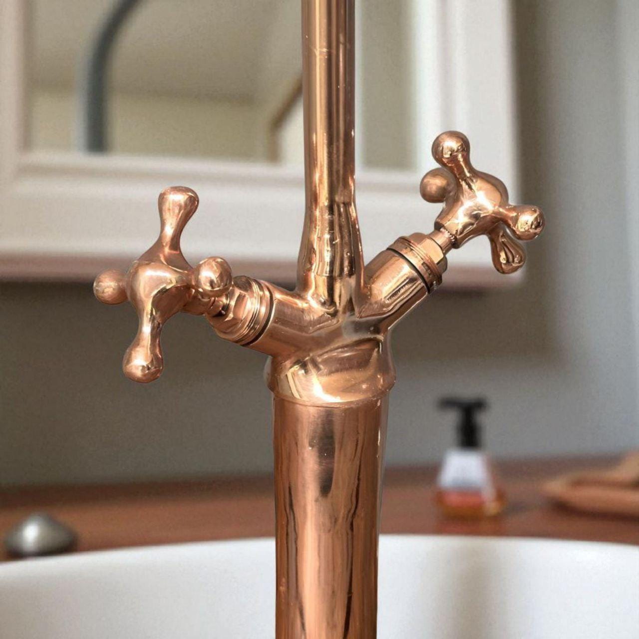 Copper Bathroom Faucet – Gooseneck Sink Faucet Rustic Farmhouse Vanity Tap Vintage Style Copper Fixture,VintageCopperDecor