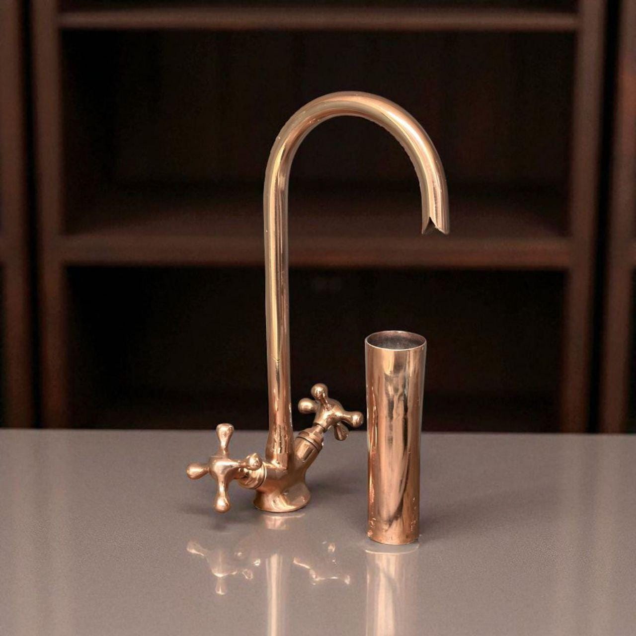 All photos in this listing are of the actual product — taken by us. We never use AI-generated images, stock mockups, or digital renderings. What you see is exactly what you’ll receive: a handmade copper faucet crafted with care.