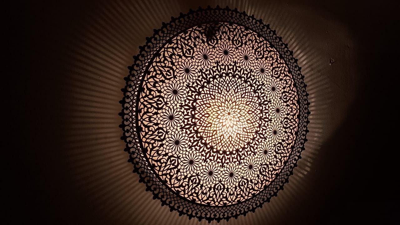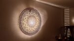 Moroccan Brass Wall Sconce – Handcrafted Round Cut-Out Wall Light, Boho Ambient Lighting