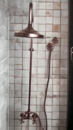 Elevate your bathroom with this handcrafted Red Brass Copper Shower System, combining timeless design with durable functionality. Made from solid genuine brass by skilled artisans, each piece is hand-carved in an antique style, giving it a unique character that deepens with age.