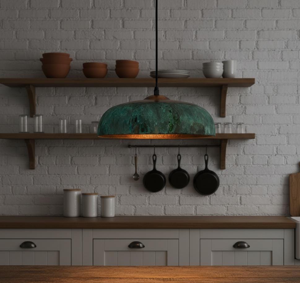 Handcrafted Green Patina Copper Pendant Light – Farmhouse Island Lighting