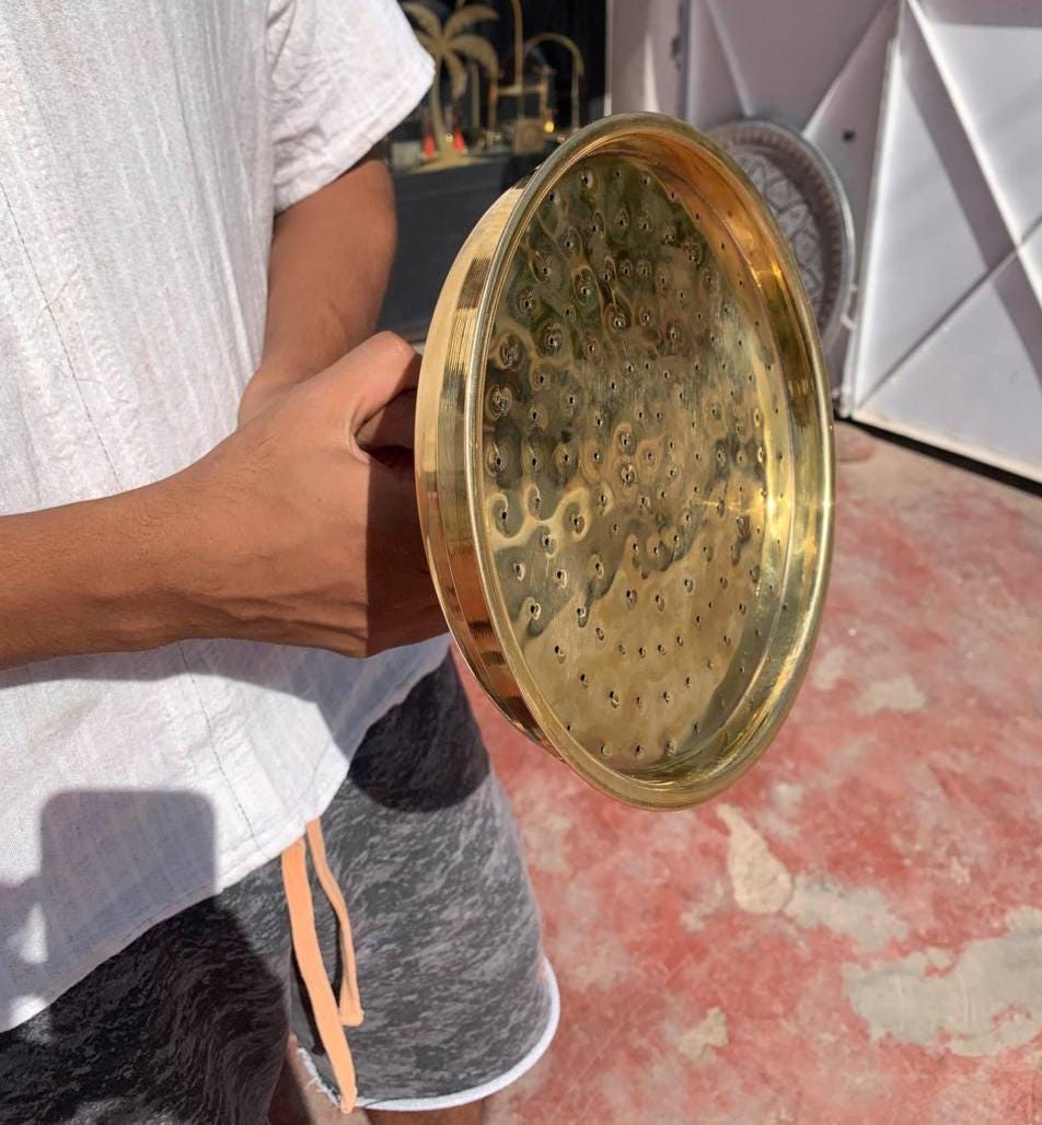 Add timeless elegance to your bathroom with this handmade solid brass rain shower head, forged in Morocco by skilled artisans. Each piece is crafted from 100% unlacquered solid brass, allowing it to develop a natural patina over time, giving your shower a truly unique antique character.