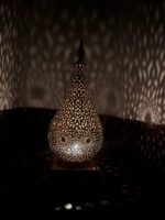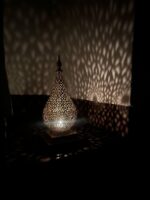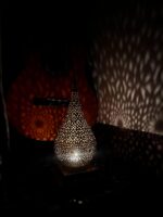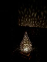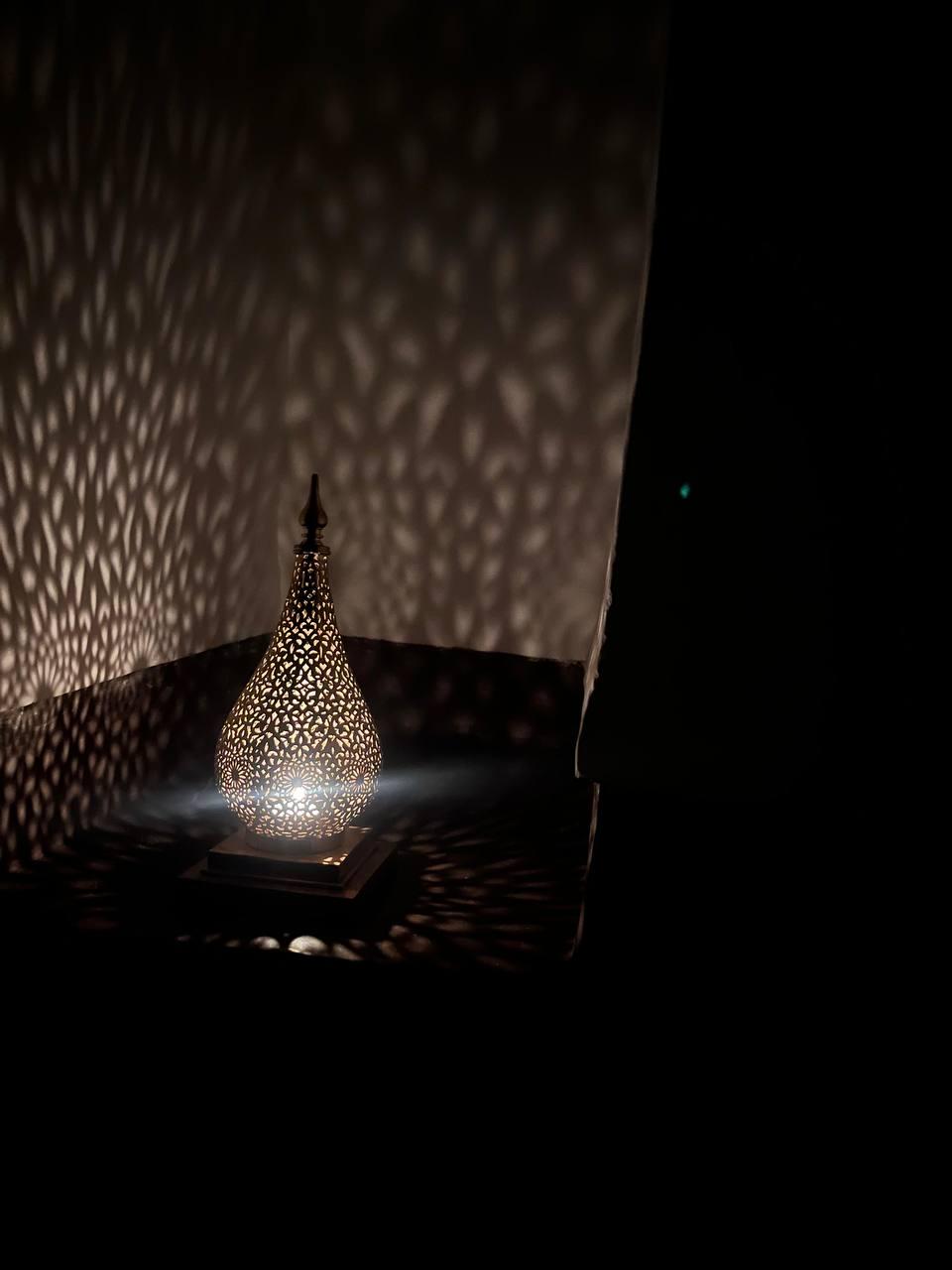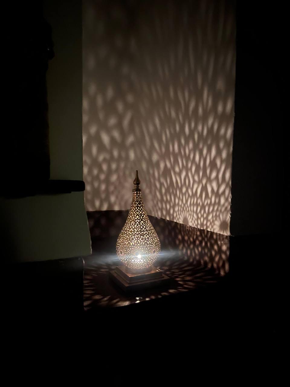 Bring warmth, elegance, and exotic charm into your home with this handcrafted Moroccan brass table lamp. Featuring a finely engraved brass lampshade and intricate handmade design, this oriental-style lamp produces a stunning lighting effect when illuminated, casting beautiful patterns across your walls and ceiling.