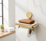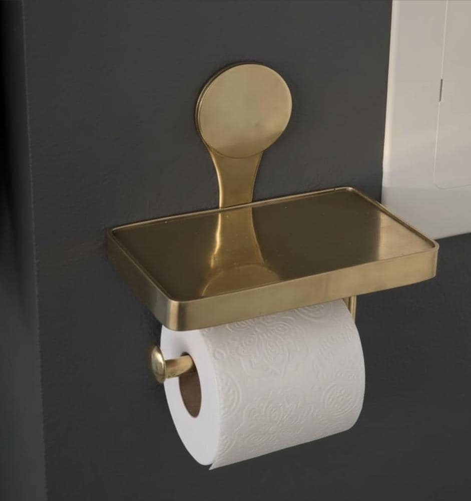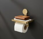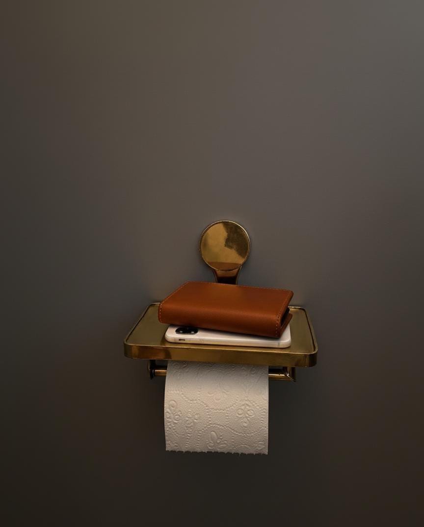 Handmade Unlacquered Brass Toilet Paper Holder with Shelf – Rustic Farmhouse Bathroom Hardware